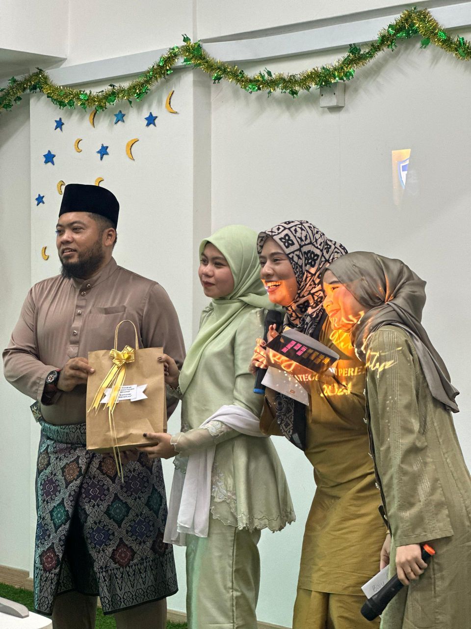 - Each group, comprising students, teachers, and staff, performs a presentation or skit related to Hari Raya celebrations.